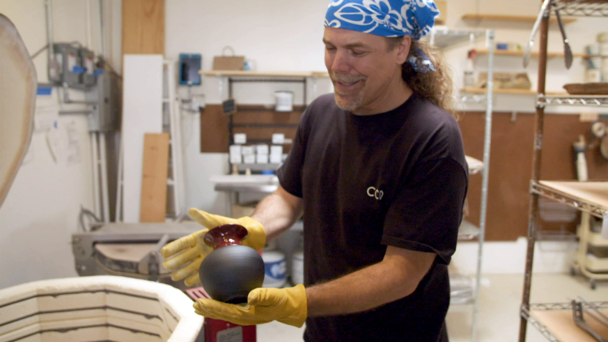 Showing us more of his pottery, Brett continues to talk about his methods, and it’s easy to see the scientific influence at work in his ceramic approach. “I have a standard operating procedure. You learn the foundations of working with clay and then the fun and creativity is tweaking them and breaking them,” he explains. “Every once in a while, some new technique works really well, so I’ll spend the next two or three years exploring that and digging deeper into it.” Brett tracks his artistic failures and successes in a journal, much as he does his lab work, with orderly notation throughout. “Wedging the clay, preparing it for the wheel, centering it, opening it, lifting it, shaping it, every step requires the one before it being done right,” Brett explains. “This is where science and art synergize.”